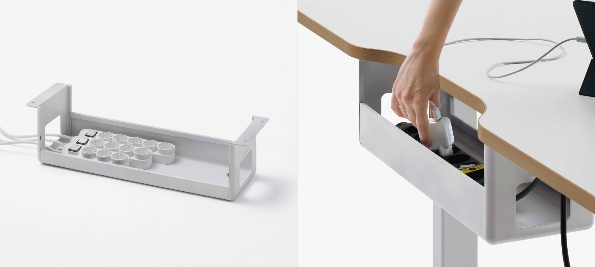 Bên dưới mặt bàn là khay đựng ổ điện rộng rãi, cho phép: